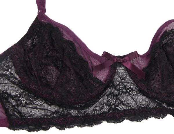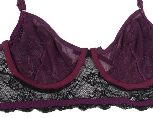Conjunto de sujetador Naughty Purple Cute Boudoir con anillo de acero