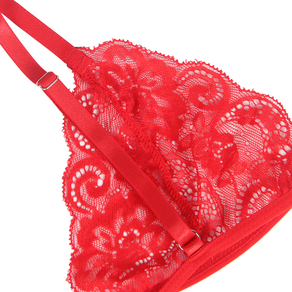 Conjunto de sujetador de anillo de pierna de cinturón de liga de diseño hueco de encaje rojo